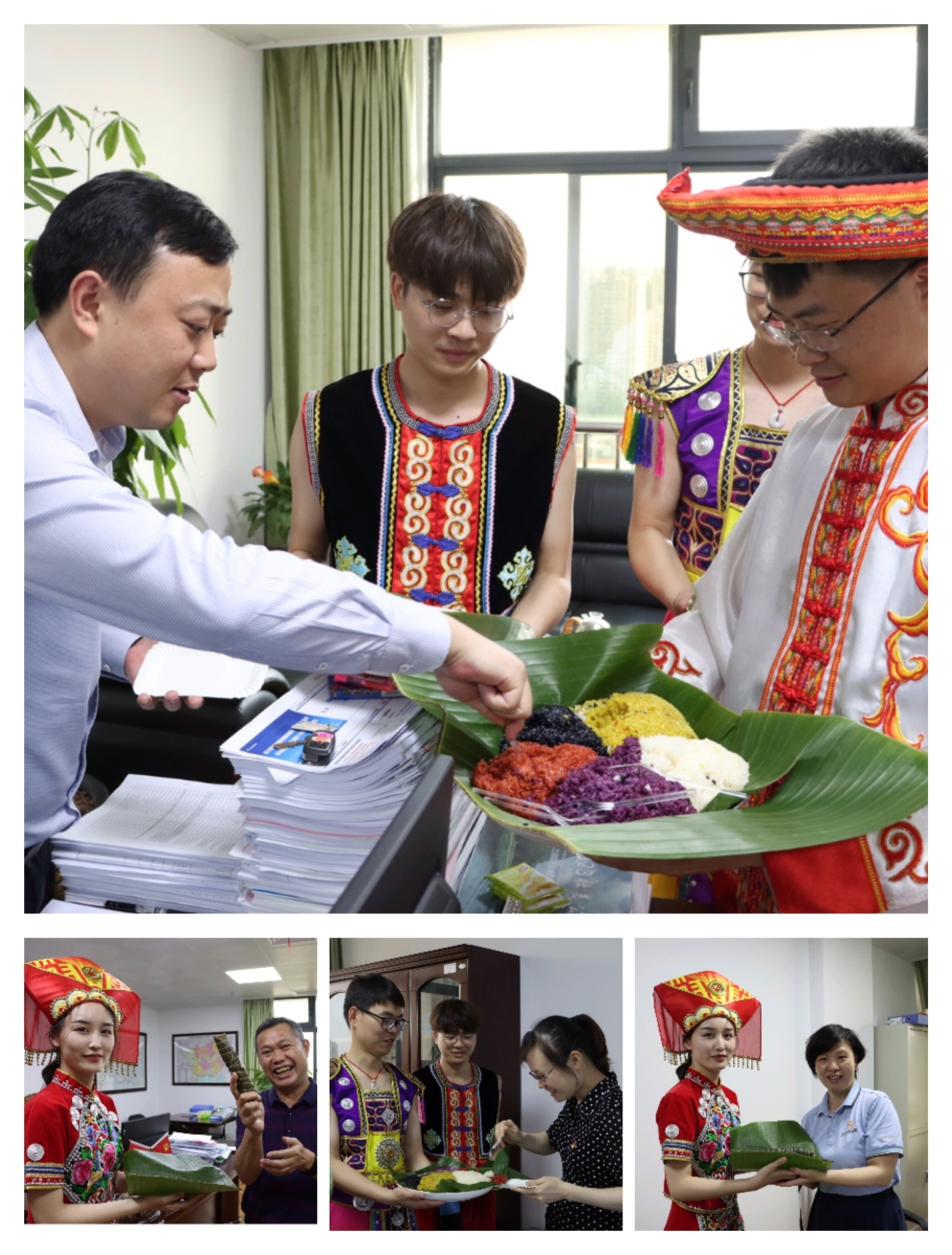 在“做民族傳統美食”環節,青年職工身著少數民族服飾,通過制作品嘗五色糯米飯、艾葉糍粑、黑米三角粽、芭蕉葉糍粑、涼粽、芋頭糕等少數民族傳統美食,進一步增強了大家對少數民族傳統文化的認同感。