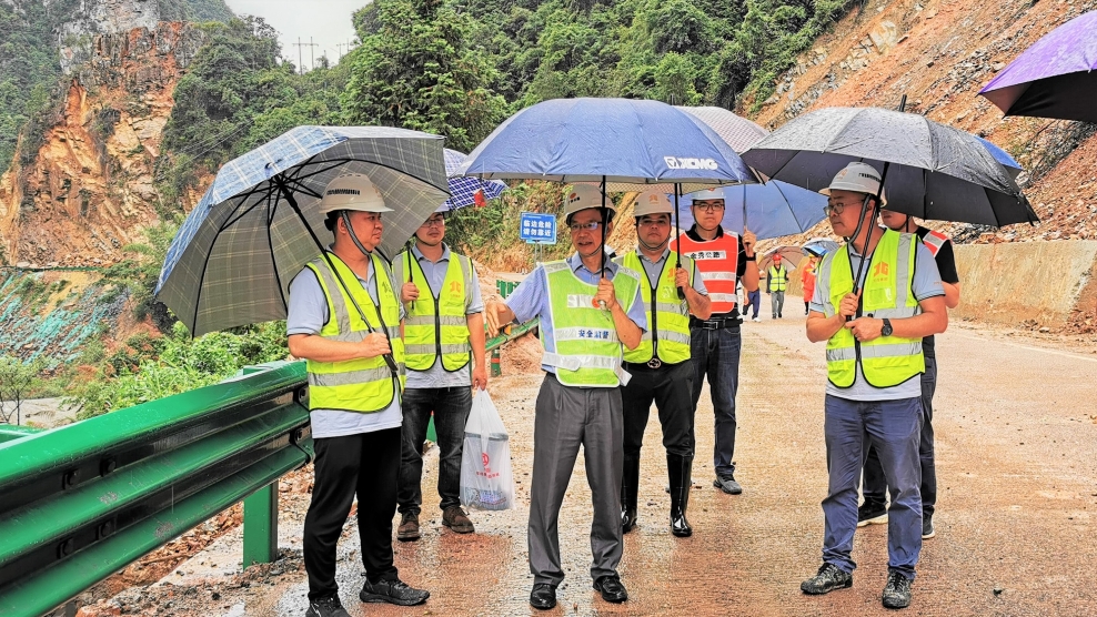 6月18日至20日,受連續強降雨影響,北投公路集團羅城經懷寶(風吹坳)至融水洞頭公路(以下簡稱羅融路)和G355蒙山至金秀公路(以下簡稱蒙秀路)出現多處邊坡塌方及路基坍塌,對當地群眾生命財產安全造成威脅。險情發生后,自治區公路發展中心主任馮永平第一時間趕赴現場指導防汛搶險工作,桂中公路發展中心副主任李建高、黃斌,公路集團副總經理、總法律顧問陶亮參加。