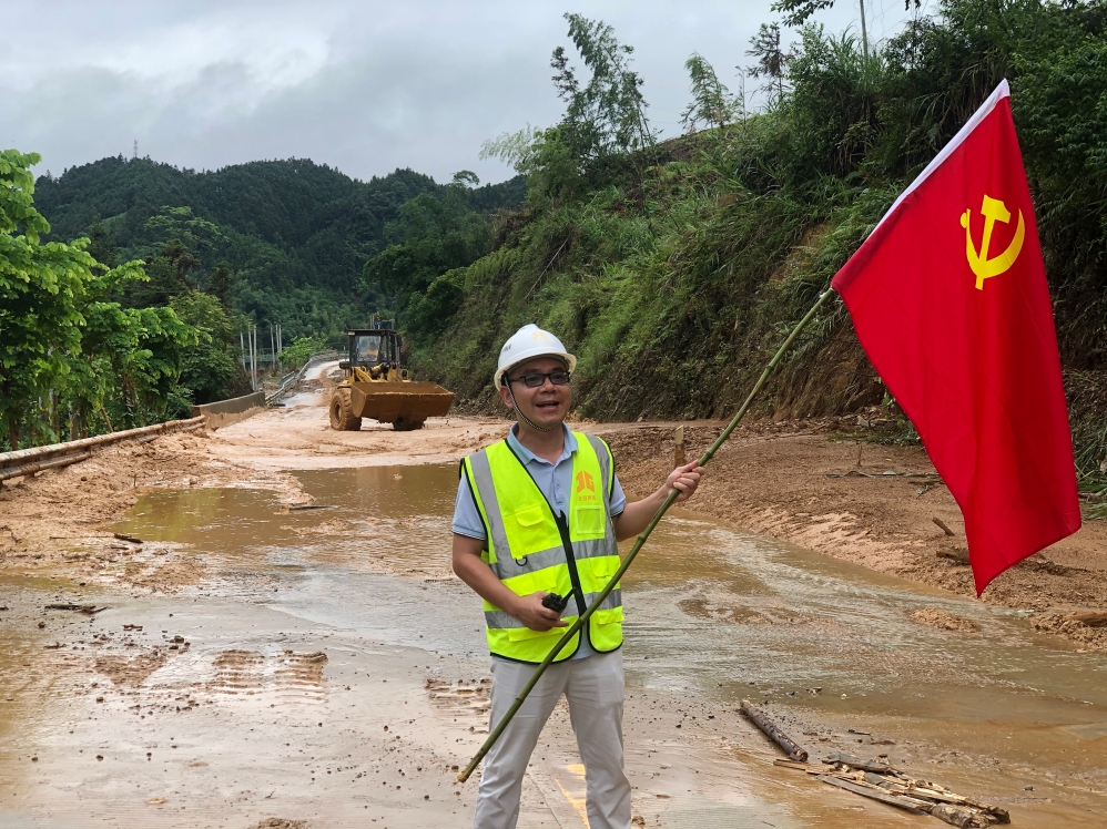 圖為北投公路集團黨員沖鋒在前開展應急搶險工作