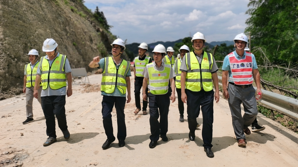 6月24日,三江侗族自治縣縣長陳震到北投公路集團三江縣良口至梅林公路(以下簡稱良梅路)調研塌方搶險工作,并組織召開地災處理協調會。自治區公路發展中心副主任何開送,集團公司黨委副書記、副董事長、總經理李祖繁,副總經理、總法律顧問陶亮,桂中公路發展中心副主任李建高等參加。
