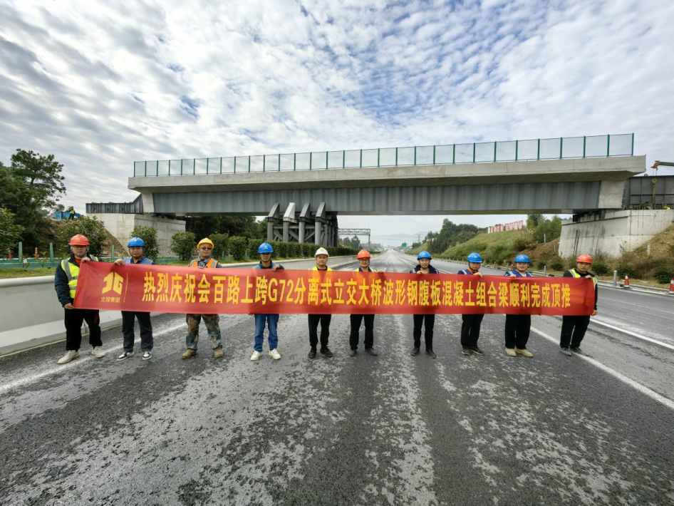 10月18日,上跨G72分離式立交大橋順利完成頂推施工,較原計(jì)劃提前4天完成