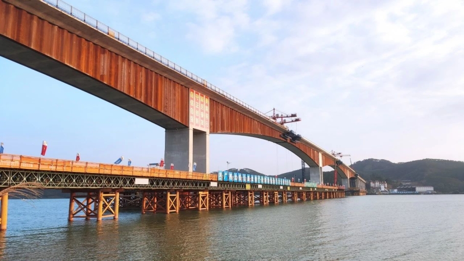 圖為合龍后飛龍大橋主橋平馬側(cè)邊跨