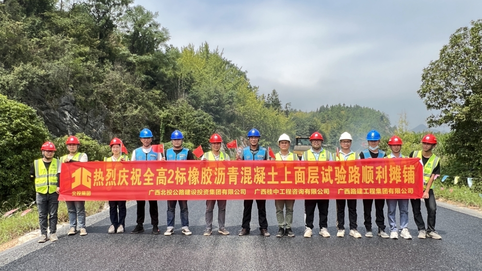 9月27日,在國慶、中秋雙節(jié)來臨之際,桂林片區(qū)S501全州石塘經蕉江至高尚公路(興安段K35+ 109~K60+310)K60+100~K60+310 AC-13 細粒式橡膠改性瀝青混凝土路面攤鋪試驗段施工正式啟動,標志著全高路(興安段)進入瀝青路面上面層施工階段。